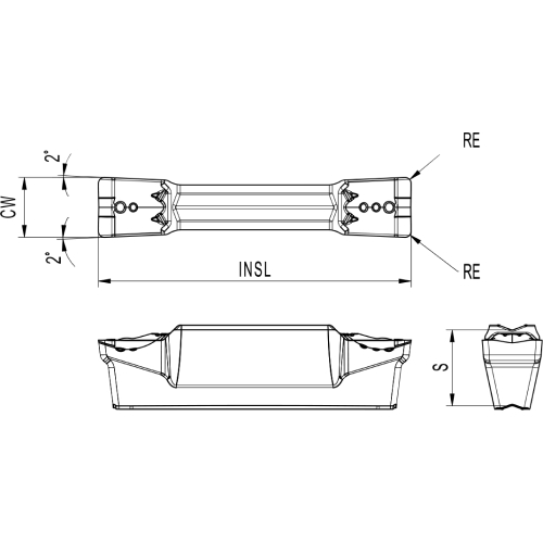 ATD 504-TS so natančne ploščice za zarezovanje in odrezovanje, zasnovane za učinkovito obdelavo različnih kovin pri srednjih pogojih obdelave.
