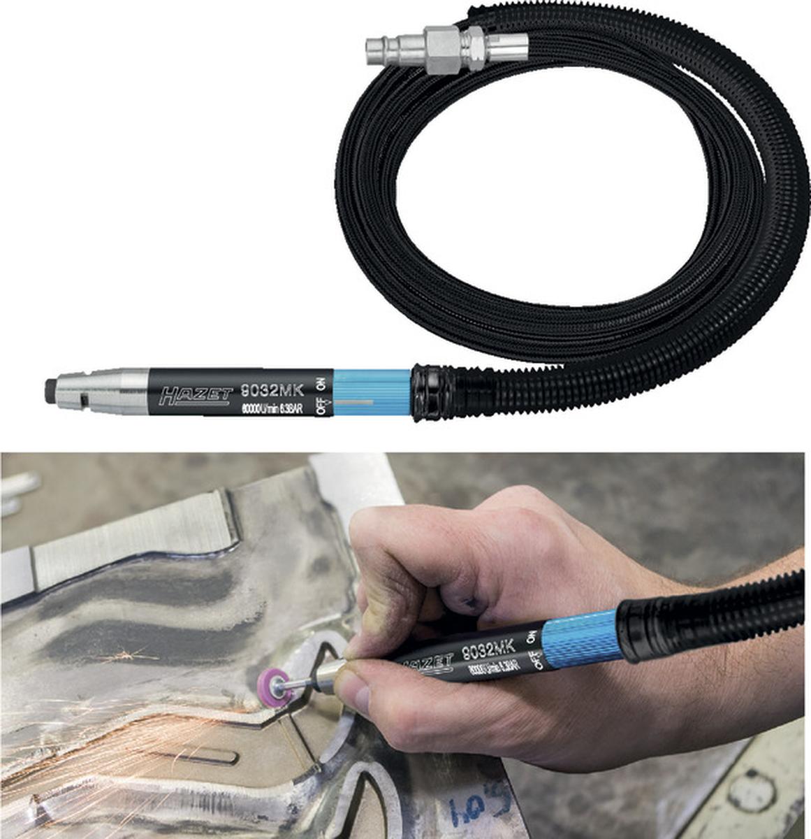 Pnevmatski palični brusilnik 9032MK je izjemno kompakten in zmogljiv pripomoček za natančna dela na težko dostopnih mestih. Zahvaljujoč trpežnim Kevlar lamelam zagotavlja dolgo življenjsko dobo, njegova nizka teža pa omogoča udobno delo tudi pri dolgotrajni uporabi.