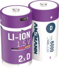 BATERIJE POLNILNE USB C, 2 X MONO D LI-ION, 1,5V, 5400MAH, ANSMANN