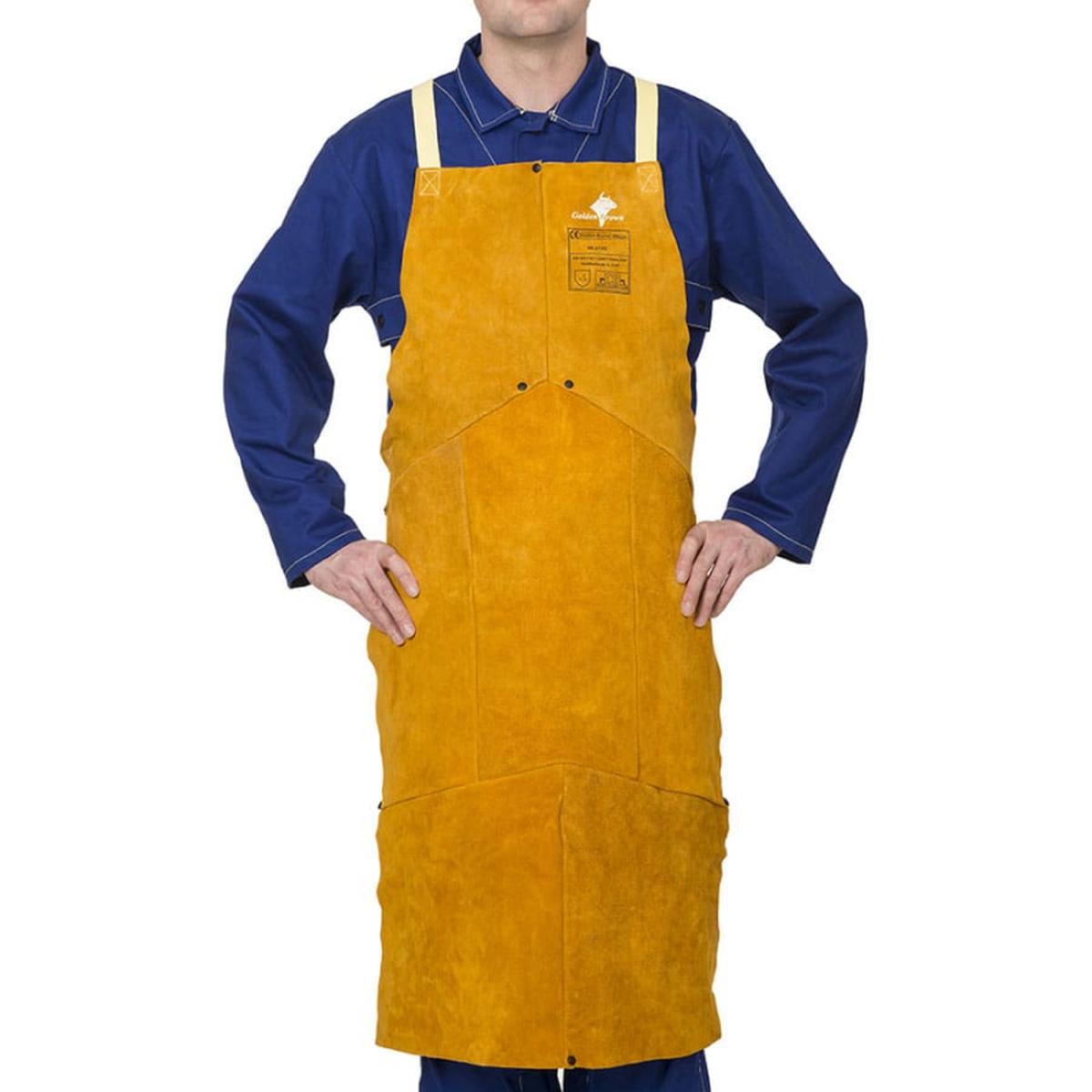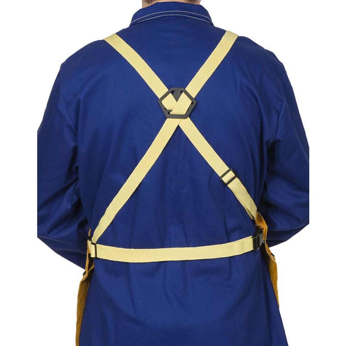 Varilski predpasnik je izdelan iz trpežnega govejega usnja in šit z ognjeodporno kevlarjevo nitjo, kar omogoča odlično zaščito pred vročino, iskrami in mehanskimi poškodbami. Namenjen je zaščiti prsnega koša, trebuha in zgornjega dela nog pri varilnih delih in drugih zahtevnih industrijskih opravilih.