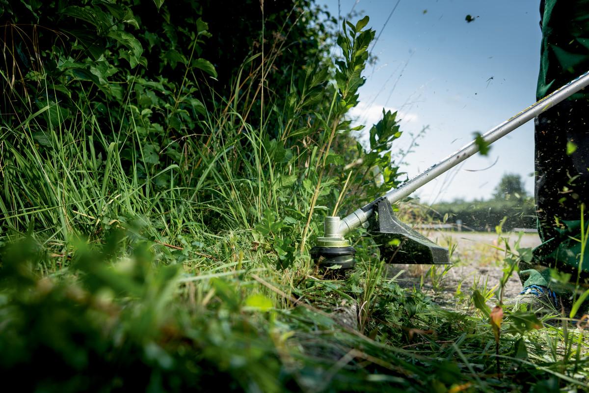 Košnja, obrezovanje in čiščenje s priključkom za koso na nitko večnamenskega sistema Metabo, rešitev "vse v enem" za številna vrtnarska opravila