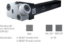 - Längsrändelung am Werkstück nach DIN 82: RAA, RBL 30°, RBR 30°