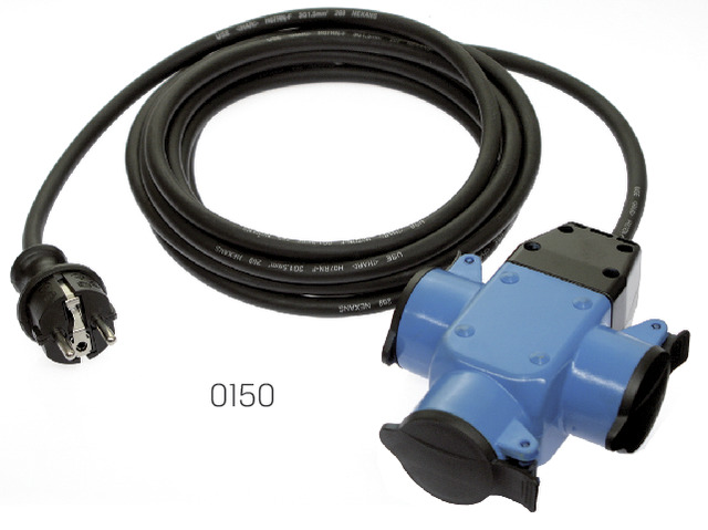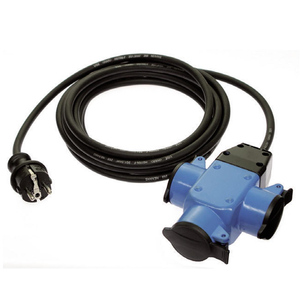 PODALJŠEK KABELJSKI ELEKTRIČNI GUMIJASTI 4,5m-s tremi zaščitenimi vtičnicami (IP