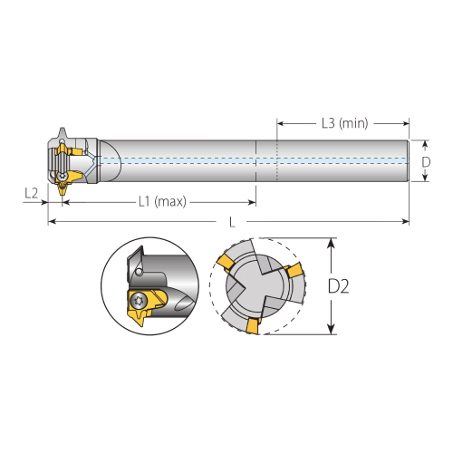 Rezkar palični navojni za ploščice tipa L je namenjen natančnemu rezkanju navojev s pomočjo izmenljivih ploščic tipa L. Omogoča zanesljivo in stabilno obdelavo pri širokem spektru industrijskih aplikacij.