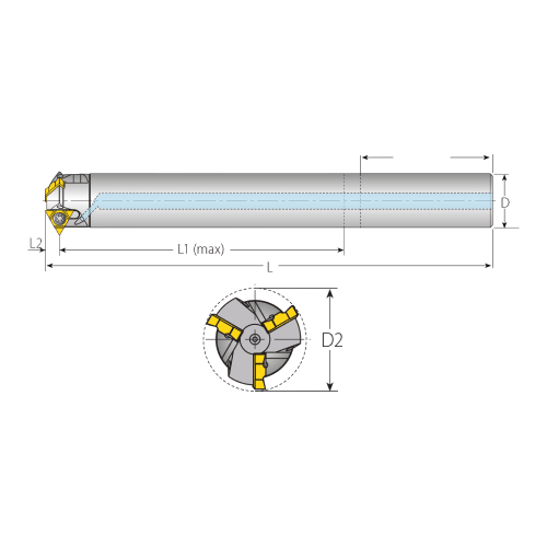 Rezkar palični navojni za uporabo s ploščicami tipa U. Orodje je zasnovano za natančno in učinkovito obdelavo navojev v jeklu ter drugih kovinskih materialih. Odlikuje ga cilindrično vpetje, ki omogoča stabilno pritrjevanje in zanesljivo delovanje.