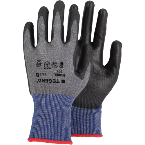 TEGERA 803 so izjemno tanke ESD protiurezne rokavice s stopnjo zaščite Cut B, ki zagotavljajo visoko občutljivost in varnost pri delu z ostrimi predmeti. Zasnovane so za uporabo v elektrostatično občutljivih okoljih, kjer je potrebna natančnost in hkrati zaščita pred urezninami.