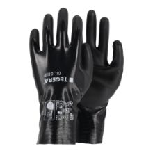 - rokavice zagotavljajo odličen oprijem v oljnatih okoljih- v celoti premazane, s trojnim premazom iz nitrilne pene in z dolgo manšeto- kontaktna toplota do 100°C- primerne za zaslon na dotik