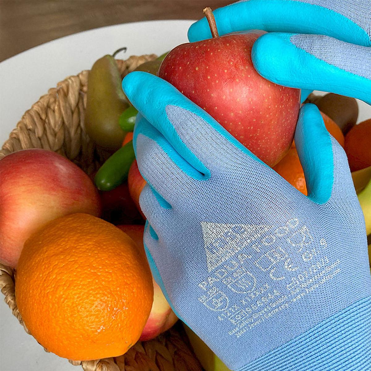 PADUA FOOD so visoko specializirane montažne rokavice, izdelane iz finega 15-gauge najlonskega pletiva z nitrilno penasto prevleko na dlani in prstih. Namenjene so uporabi v živilski industriji, saj izpolnjujejo zahteve Uredb (ES) 1935/2004 in EU 10/2011 glede stika z živili.