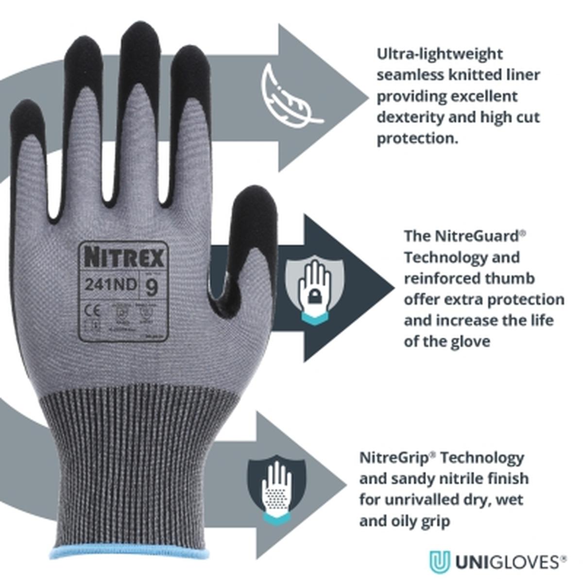 NITREX 241ND,VEL.10,ROKAVICE PROTIUREZNE CUT D S PREVLEKO IZ NITRILNE PENE, SIVO