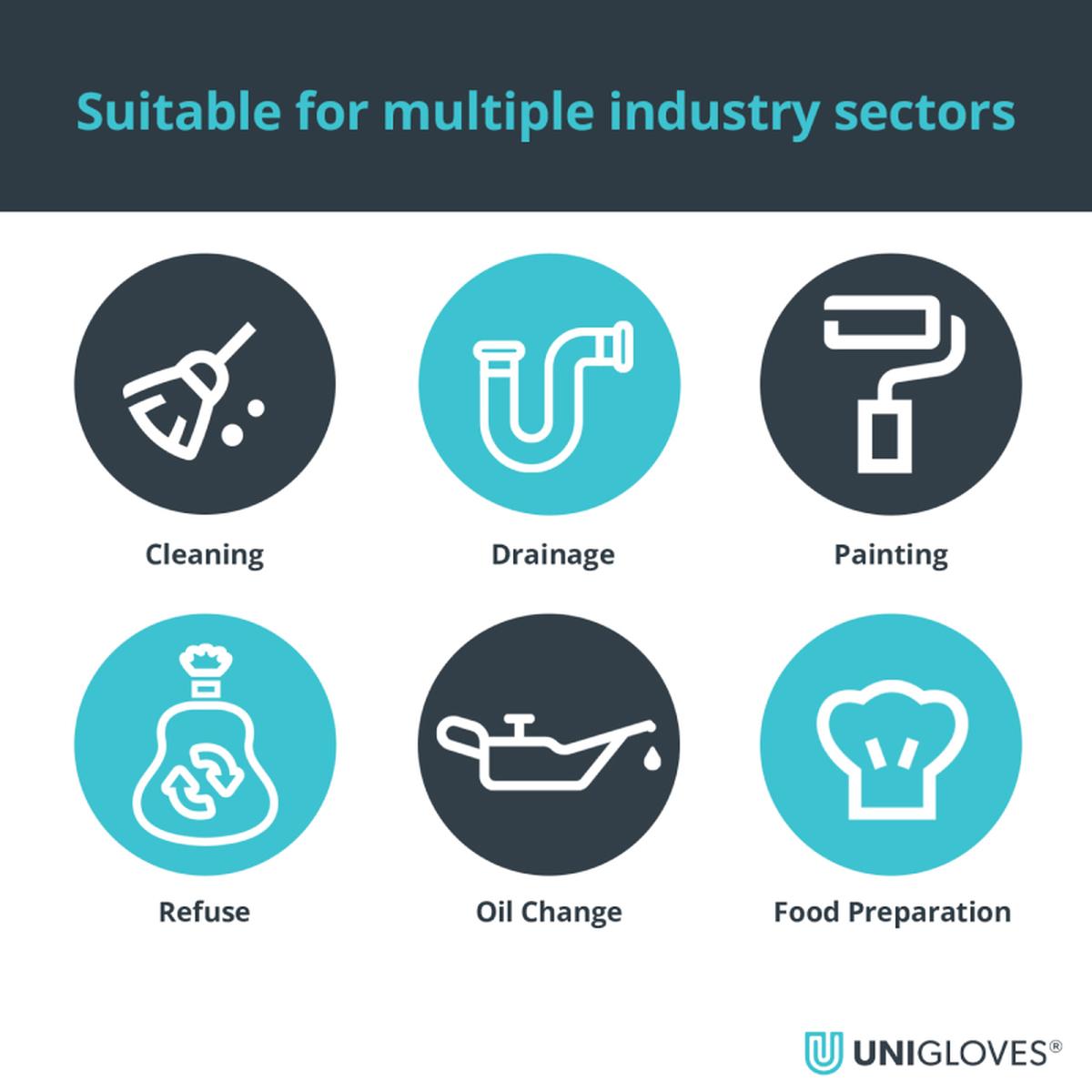 Rokavice so opremljene z nedrsečim diamantnim vzorcem na dlani, ki omogoča varen in zanesljiv oprijem tudi v mastnih ali mokrih pogojih. Primerne so za uporabo v živilski industriji, saj ne vsebujejo nevarnih snovi in ustrezajo higienskim standardom.