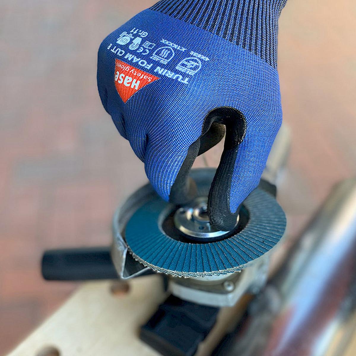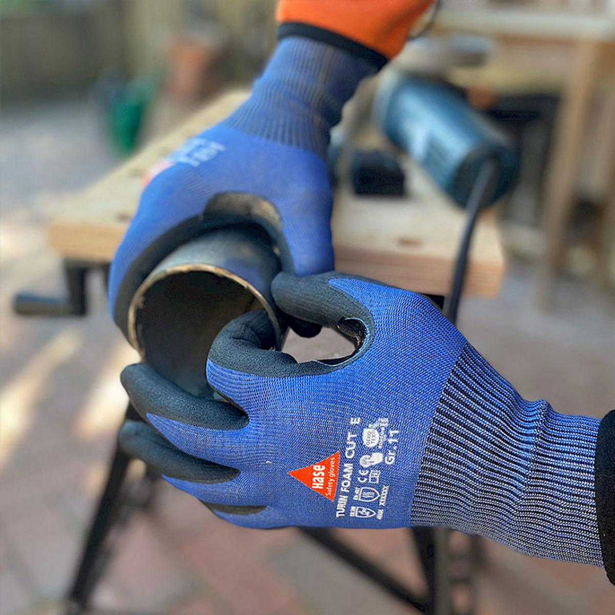 TURIN FOAM CUT E so robustne protiurezne delovne rokavice, namenjene za delo v zahtevnih industrijskih okoljih, kjer so prisotni ostri robovi, kovine in druge nevarnosti za ureznine. Zagotavljajo zaščito razreda E po standardu EN 388, kar pomeni zelo visoko odpornost proti rezanju.