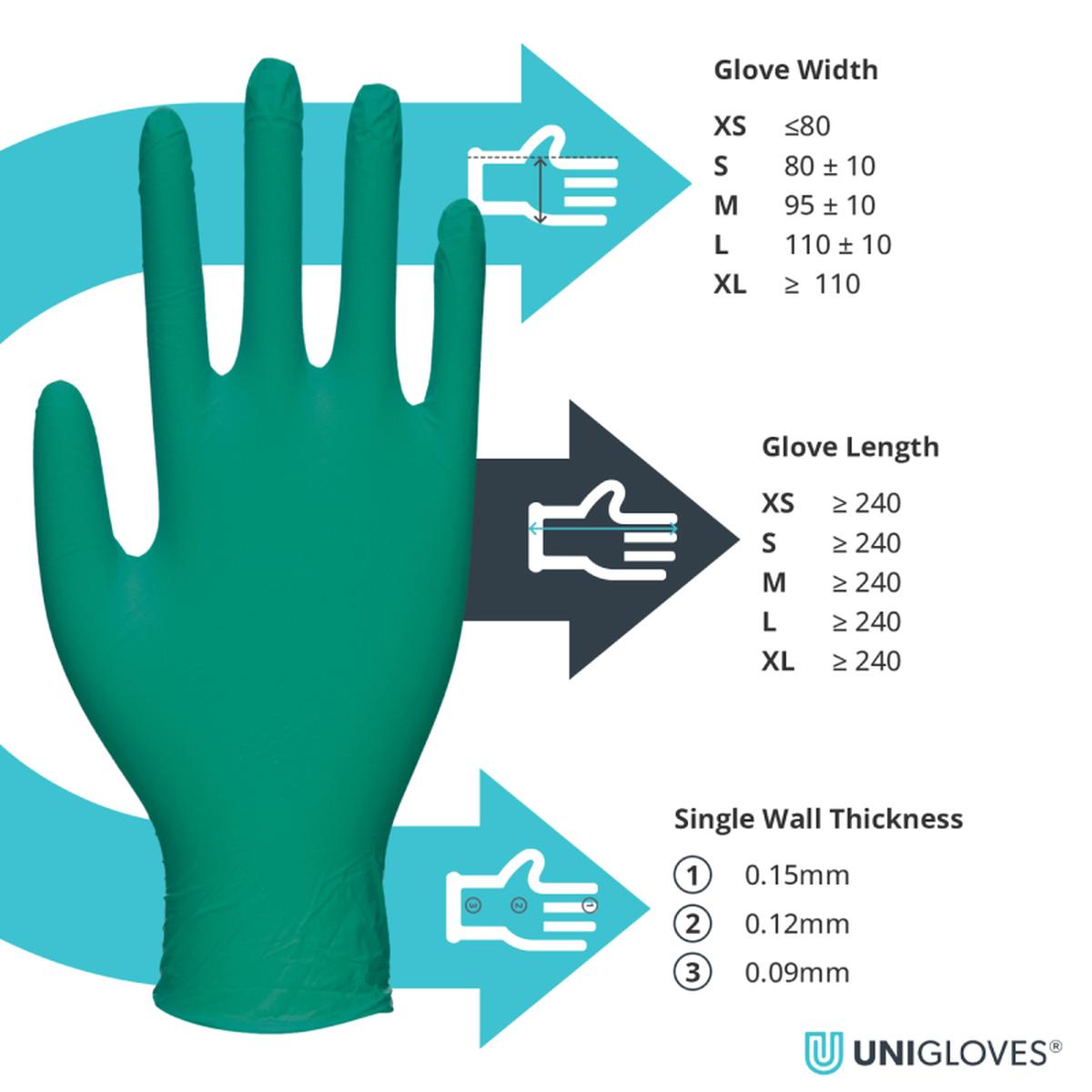 GA008, Vel.XL(10),ROKAVICE ZA ENKRATNO UPORABO IZ NITRILA, ZELENE BARVE,DEBELINE