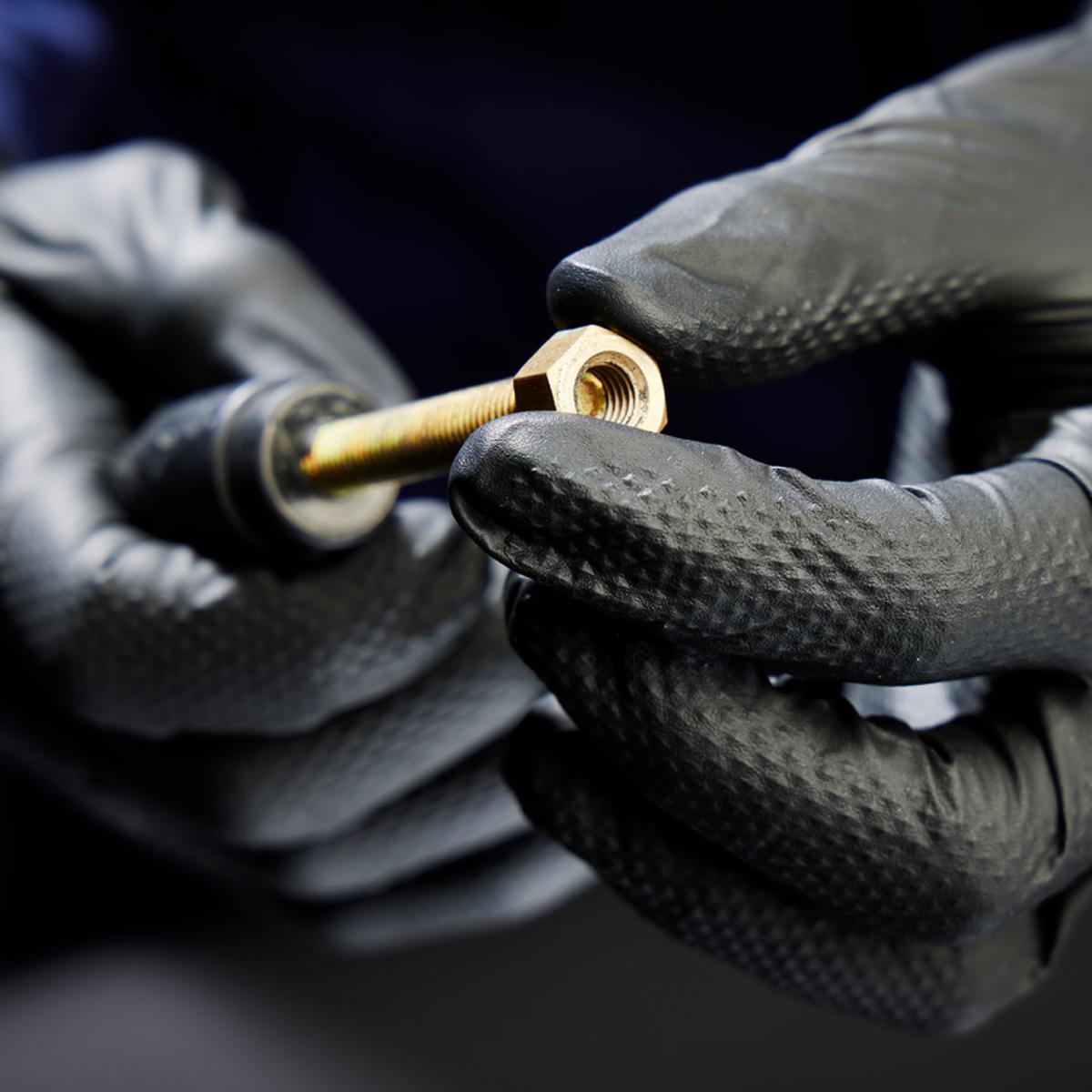 Nitrilne rokavice PRO.TECT Black Diamond HD so zasnovane za zelo zahtevna dela, kjer so potrebni izjemen oprijem, visoka trpežnost in zanesljiva zaščita rok. Diamantna struktura na obeh straneh rokavic zagotavlja odličen nadzor tudi v mastnih ali vlažnih pogojih, hkrati pa omogoča dolgo življenjsko dobo pri intenzivni uporabi.