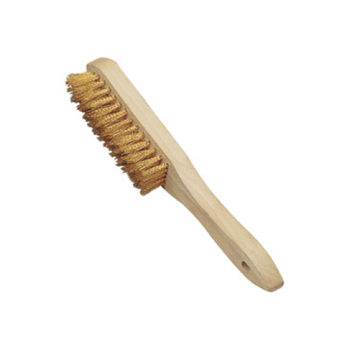 Ročna žična ščetka z ukrivljenim telesom iz trdega lesa in priročno izvrtino za obešanje je idealna za nežnejše čiščenje kovinskih površin, kjer je pomembno preprečevanje prask ali isker. Opremljena je z gostimi ščetinami iz medeninaste žice premera 0,30 mm.