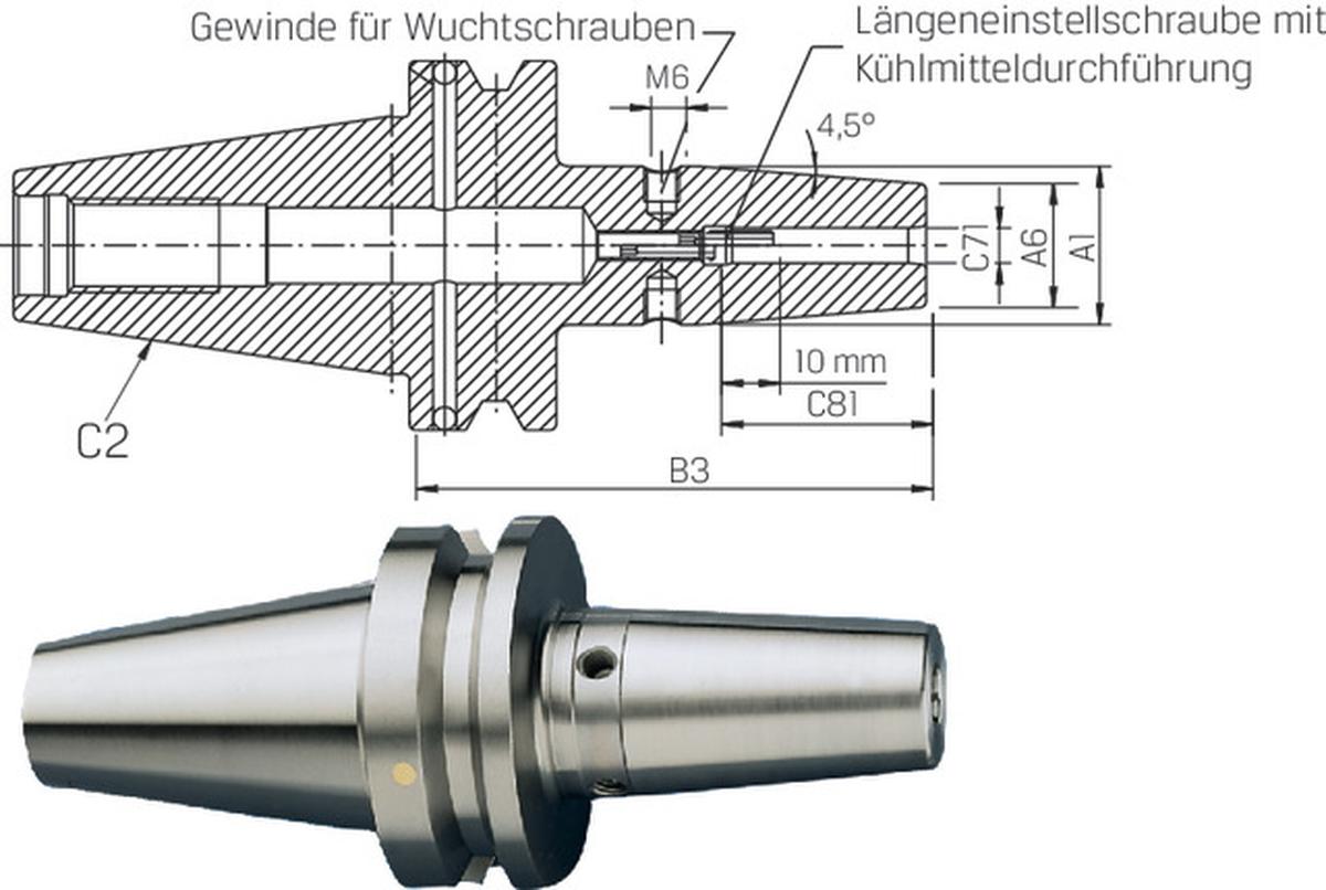 mit Schlitzen in der Spannbohrung für Kühlmittelzufuhr