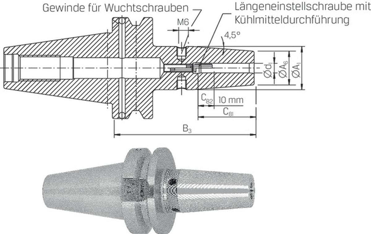 mit Schlitzen in der Spannbohrung für Kühlmittelzufuhr