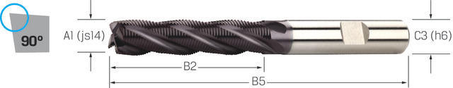 REZKAR PALIČNI KOSMAČILNI DIN1835B/HR D25,0mm, dolgi L=166/90mm Z=5 HSS-Co, TiAl