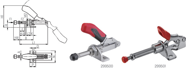 - lange Schubstangenführung mit Befestigungsgewinde und Mutter