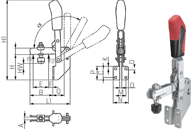 Senkrechtspanner AMF, Senkrechtspanner winkel mit offenem Haltearm