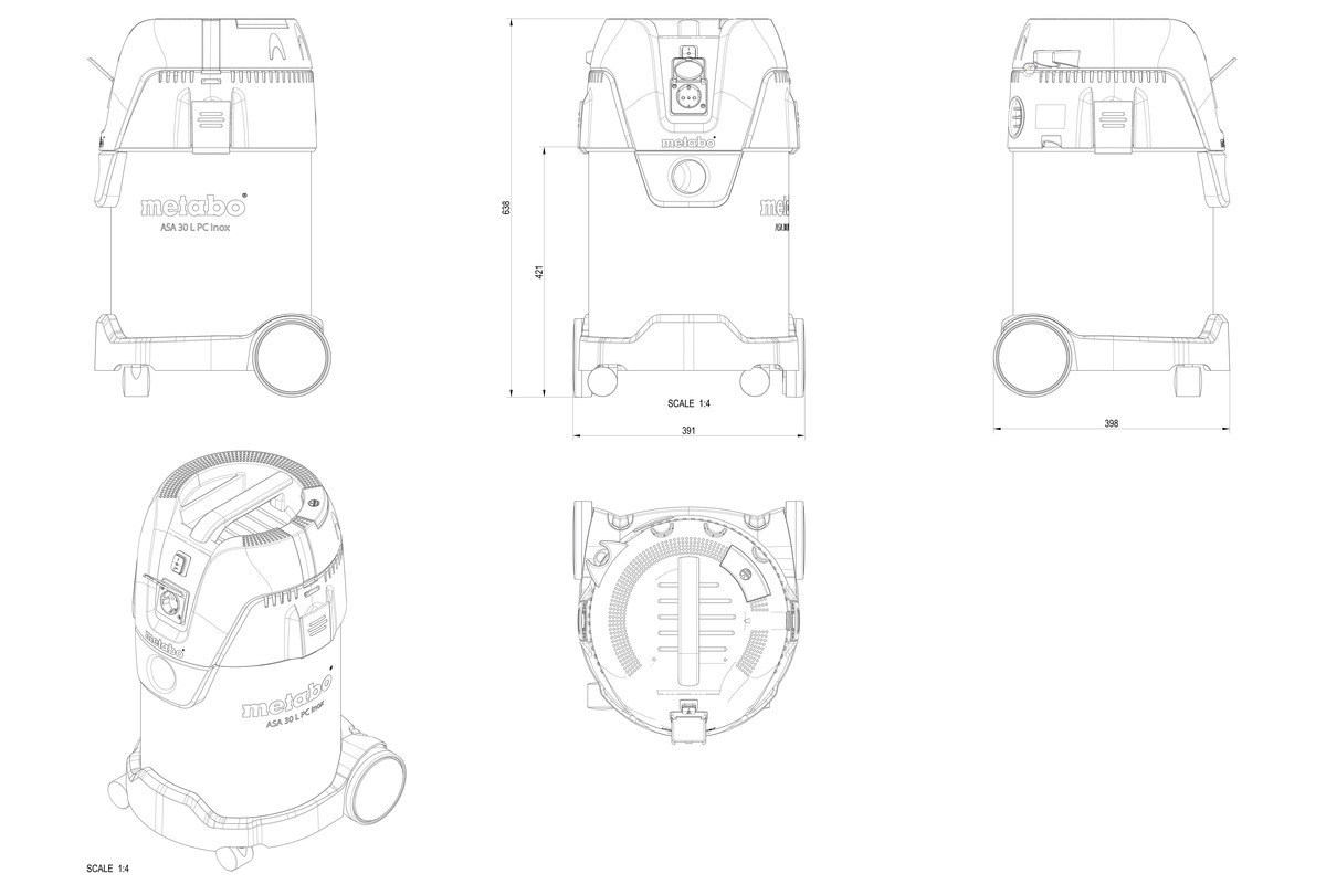 sesalna cev (O 32 mm / 3.5 m), Vmesni element za ročaj, 2 krominirani trdi cevi, "Harmonika" filter iz poliestra, PE filter vrečke, filter vrečka iz najlonske tkanine, Sesalni nastavek za špranje, nastavek za talno sesanje (širina 300 mm), nastavek za sesanje (širina 120 mm), sesalni nastavek-krtača, držalo za kabel in cev