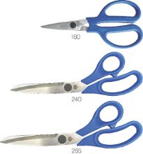 Delovne škarje, zasnovane posebej za aramidna vlaknaPosebna geometrija rezilRezilo kaljeno na 62 HRCZobčasta rezalna površina za boljši oprijemZgib privijačenErgonomski, udarno odporni plastični ročaji