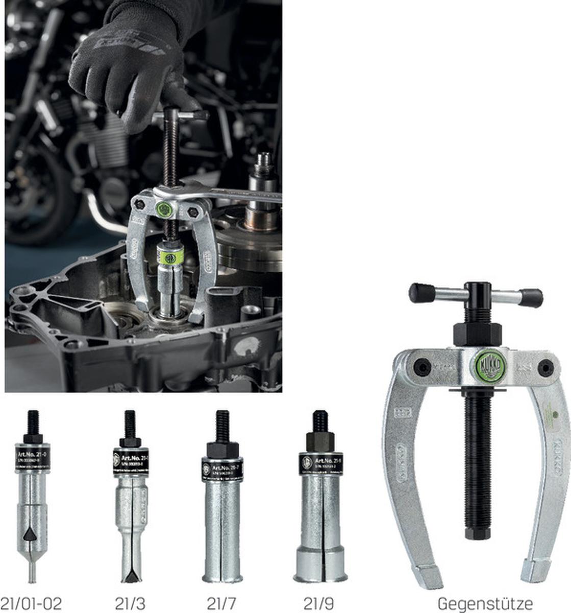 Za snemanje ležajev, zunanjih obročev in puš. Zaradi močnega razpiranja učinkovito deluje tudi pri ležajih, nameščenih tik ob steni.