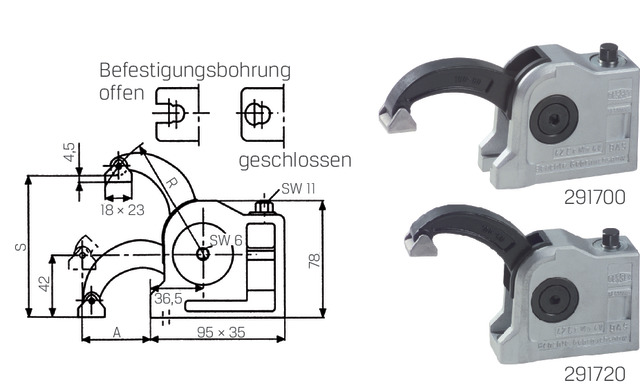 Spannsystem BAS BESSEY, Spannsystem BAS-C Befestigungsbohrung offen