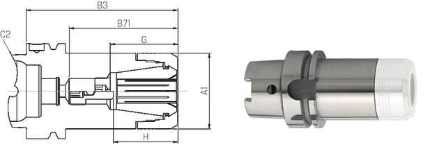 Die Größen CP16-HSK-A63-A=55/CP25-HSK-A63-A=60/CP32-HSK-A63-A=70/CP40-HSK-A63-A=80 extra kurze Ausführung ohne Innenanschlag.