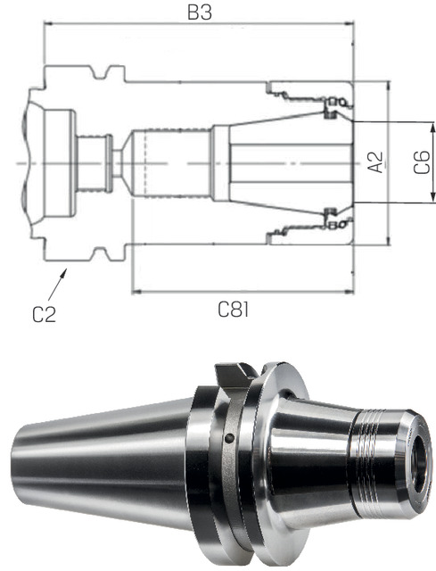 Slika Šifra Naziv [C2] Velikost vpenjala [B3] Uporabna rezna dolžina v mm [C81] Dolžina vpenjanja, max. Mm [A1] Zunanji premer vpenjala 1 mm A1 mm