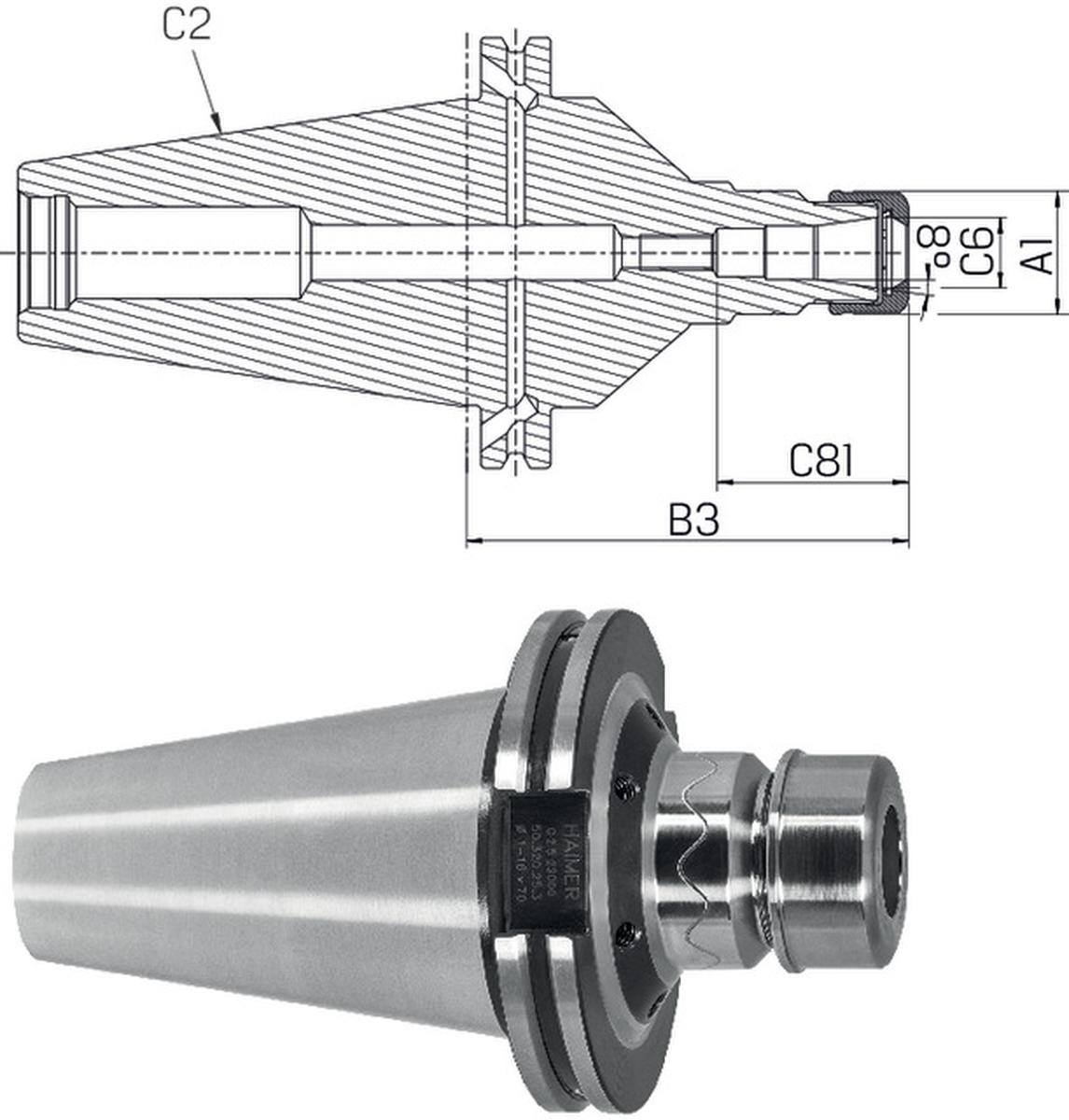 - auch für Standard-Spannzangen ER nach ISO 15488 (Achtung: Bei Verwendung mit Standard-Spannzangen wird das B3-Maß länger)