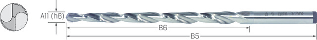 Wichtig: Mit kleinem Vorschub bohren, verwenden Sie zur Fertigbearbeitung Stiftlochreibahlen 123800, 124000 und 124100.