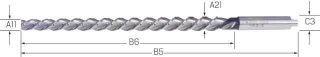 Slika Šifra Naziv [B3/B4/B5] Skupna dolžina v mm [C3] Premer vpenjala v mm [A11] Premer rezalnega dela, 1. stopnja, min.mm B6 mm [A21/D34] Nazivni premer navoja v mm