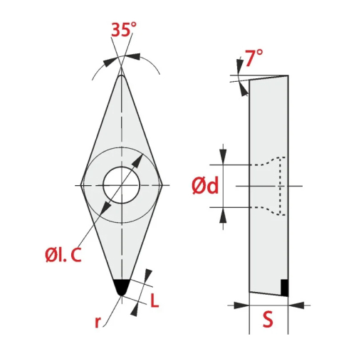 Stružne ploščice VCGW-1N so natančne karbidne ploščice, namenjene za fino in polfino obdelavo kovin. Njihova ozka, trikotna oblika omogoča lahek dostop do zahtevnih mest, kar jih naredi idealne za natančna struženja, detajlno obdelavo in izdelavo prehodov. Odlikuje jih izjemno oster rezalni rob, nizka rezalna sila ter odlična kakovost obdelane površine.
