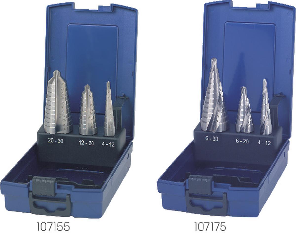 Satz in Kunststoffkassette zusammengestellt aus Stufenbohrer 107170