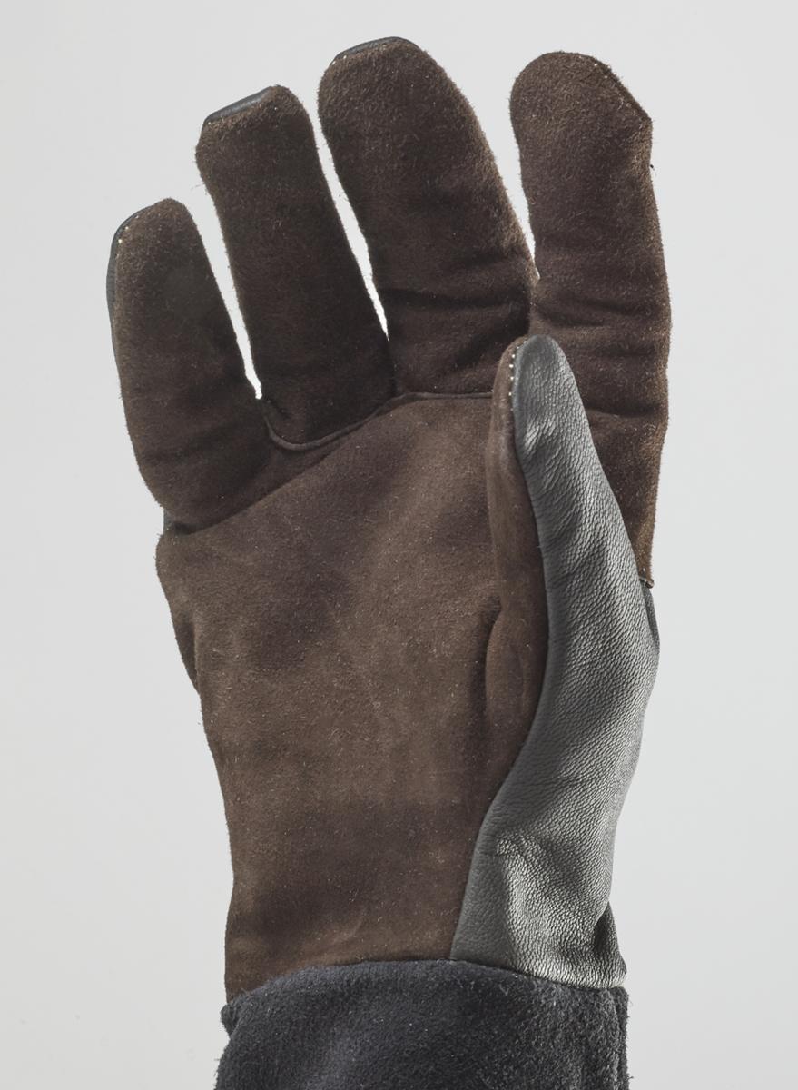 Vrhunske rokavice za MIG-varjenje, izdelane iz toplotno odpornega nebrušenega kozjega semiša in cepljenega govejega usnja.