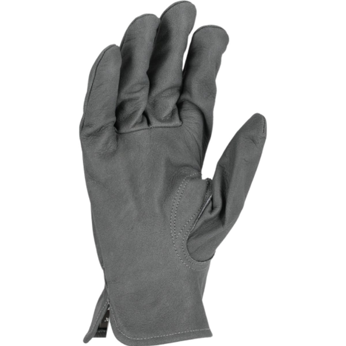 Rokavice so izdelane iz nebrušenega govejega usnja in ojačane s poliestrom, kar nudi visoko stopnjo zaščite pred mehanskimi obremenitvami. Omogočajo delo s kontaktno toploto do 100 °C (212 °F) in hkrati ohranjajo odlično občutljivost konic prstov, kar je ključno pri natančnih opravilih.