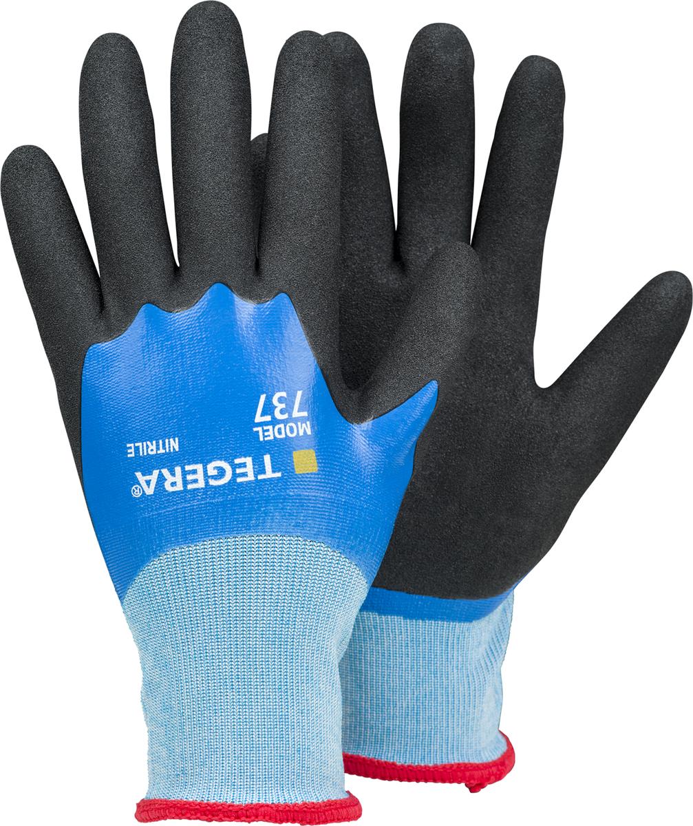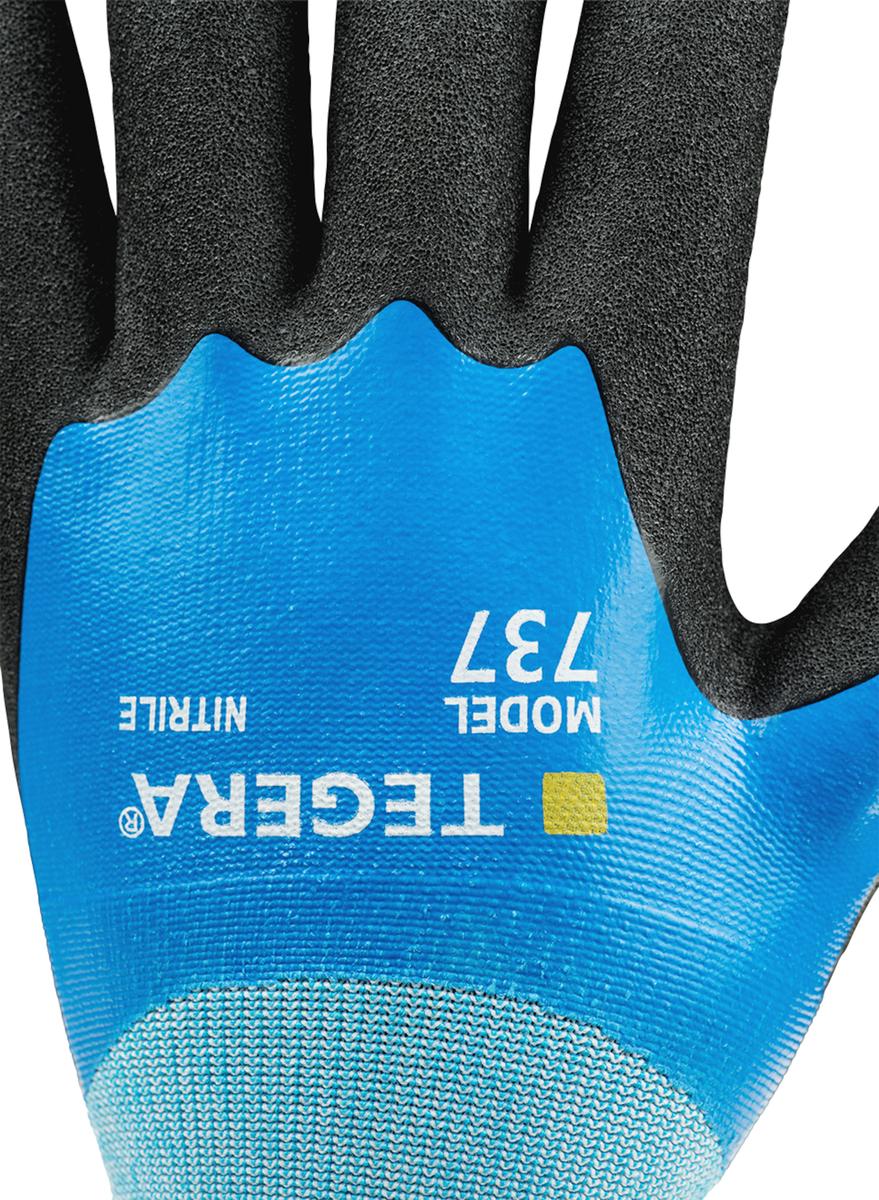 TEGERA 737 so trpežne in udobne večnamenske delovne rokavice, zasnovane za zanesljivo zaščito v mokrih, mastnih in umazanih okoljih. Rokavice so v celoti premazane z nitrilom, kar zagotavlja odpornost proti tekočinam, oljem in mehanskim obremenitvam.