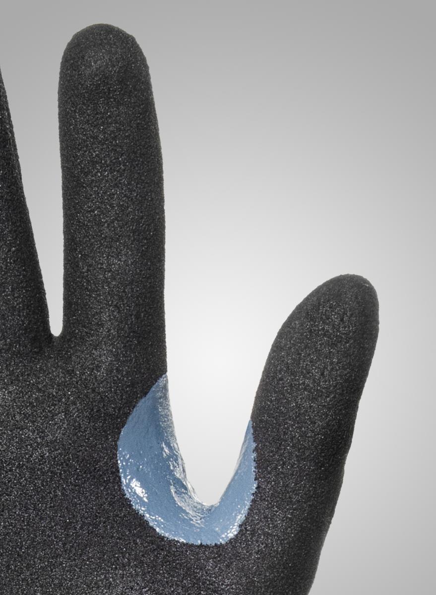 Prenese kontaktno toploto do 100 °C, Odobreno za delo z živili, Okrepitev med kazalcem in palcem, Odpornost na olja in maščobe, Anatomska oblika |