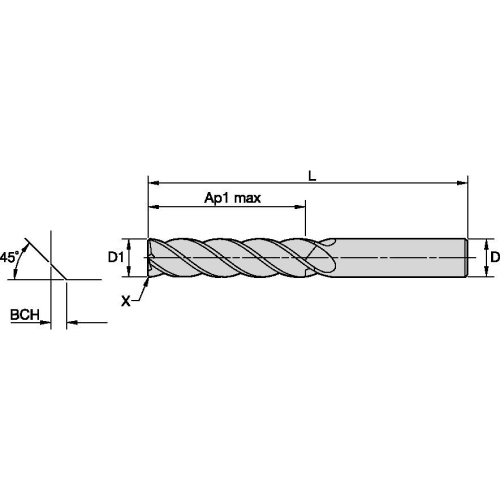 - Kot spirale (Helix Angle): X°