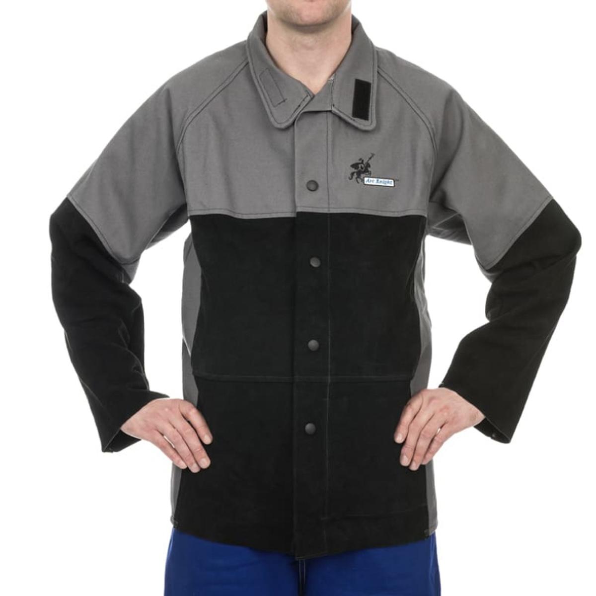 Varilska jakna iz ognjevarnega bombaža s cepljenim usnjem, črno/sive, WELDAS, 38