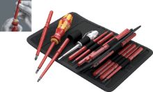 - 16-teiliger Satz mit Kraftform-VDE-Handgriff mit Abrollschutz und VDE-Wechselklingen mit reduziertem Durchmesser (jeweils 154 mm lang)