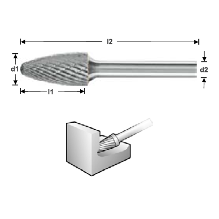 - Oblika: F- Material: VHM (volframov karbid)- Zaobljen cilinder – primeren za obdelavo kontur z zaobljenimi robovi- Učinkovit pri odstranjevanju materiala in obdelavi površin- Primeren za jeklo, nerjavno jeklo, litino in druge trde materiale