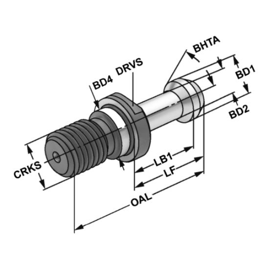 Izvlečni vijaki v skladu z ISO 7388-3, oblika JP (JF), brez dovoda hladilnega sredstva, brez O-tesnila. Primerni za uporabo s stroji, ki uporabljajo orodna vpenjala JIS B 6339. Zasnovani za natančno in varno vpenjanje brez potrebe po notranjem hlajenju.