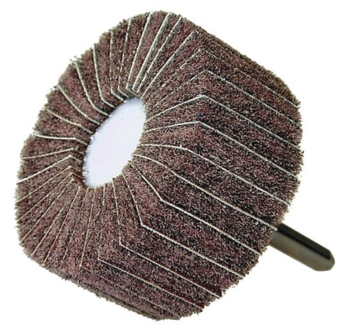 - Vliesmaterial radial, d.h. in Lamellenform angeordnet (zwischen den Lamellen jeweils ein Schleifgewebe)