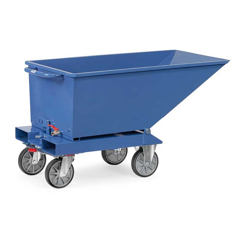 Zaradi kompaktnih dimenzij in robustnih koles iz polne gume je idealen za uporabo v industrijskih delavnicah in proizvodnji, kjer je pomembna urejenost in učinkovito upravljanje z odpadki. Prekucni zabojnik omogoča hitro in varno premikanje ter enostavno praznjenje, kar pripomore k izboljšanju produktivnosti in varnosti na delovnem mestu.