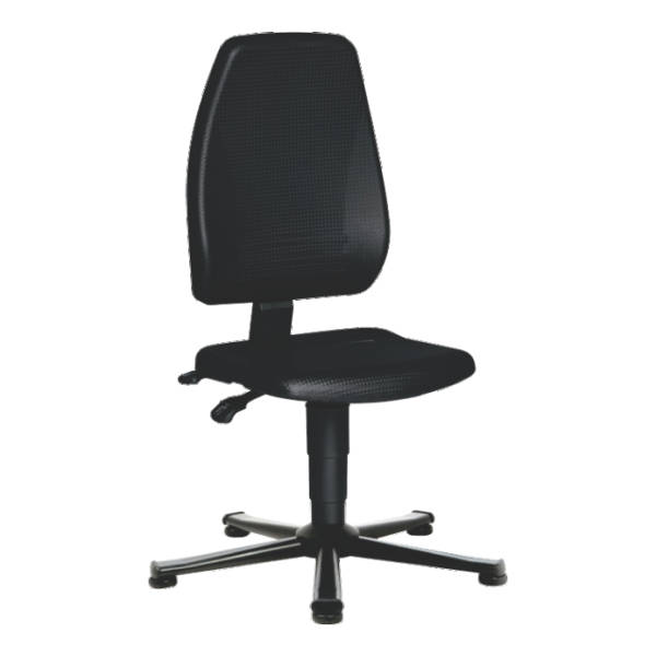Sedež je izdelan iz kakovostne PU pene, ki nudi trpežno in enostavno čistljivo površino. Hrbtni naslon z integrirano ledveno oporo v višini 520 mm dodatno podpira naravno obliko hrbtenice in zmanjšuje utrujenost pri dolgotrajnem delu.
