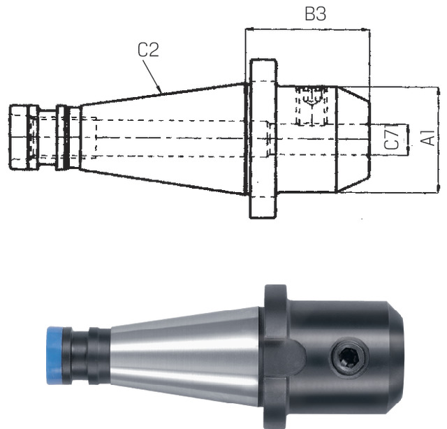 Zur Aufnahme von Werkzeugen (Fräsern) mit zylindrischem Schaft und seitlicher Spannfläche nach DIN 1835 (System Weldon).