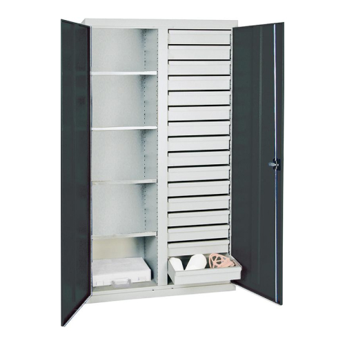 - Omara za orodje in material serije 2000, 4 police, 16 predalov, centralna predelna stena