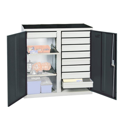 - Omarica za orodje in material serije 2000, 9 predalov, 2 polici in osrednja predelna stena
