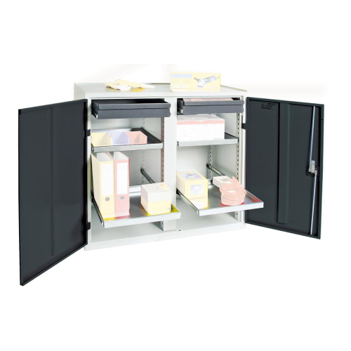- Omara za orodje in material serije 3000, 2 predala, 4 police za pladnje in osrednja predelna stena.